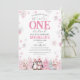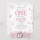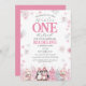 Pink watercolor invitation for you child's winter ONEderland themed first birthday party!