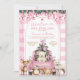Cute Winter Truck Onederland Girl 1st Birthday Arctic Animals Pink Gingham Invitation