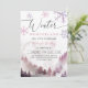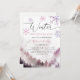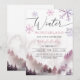 Modern girl's birthday party invitation card featuring watercolor art of the winter mountain with pine trees with pink snowflakes. The text says "Winter Wonderland." Perfect for a girl's birthday in the winter.