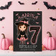 Looking for a fun way to celebrate a spooky birthday? This adorable Halloween birthday invitation features a sweet little witch in a black and pink outfit holding her pumpkin bucket, standing beside a whimsical spiderweb-themed number 7. Perfect for a girl’s Halloween party, this invitation sets the mood for a night of costumes, candy, and fun.