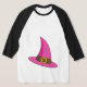 An illustration of a cute cartoon pink witch hat for halloween and witch craft enthusiast. This design is a gift idea for girly aesthetic lovers and fuchsia or magenta colour lovers.