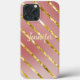Pink with Gold Sparkling Lines Custom iPhone 13 Pro Max Case. The personalised name can be in any colour you choose. I have set up the template for you to customise. No need to be tech savvy. Easy!