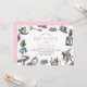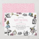 Vintage Alice in Wonderland illustrations of Alice, the White Rabbit, a key, watch and pink roses with a pink polka dot pattern on the reverse. Personalise this design by changing the text, text colour, or background colour on the reverse. Great for birthdays, tea parties, baby showers and more.
