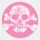 Pink Worn Skull and Crossbones Classic Round Sticker