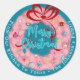 This retro Christmas round sticker has a hand painted aluminium pink wreath with classic retro ornaments, starburst, atomic symbols and the holiday greeting Merry Christmas. Personalise this sticker with your own greeting, message and name. Great stickers to use for cookie exchange or close Christmas greeting cards. This is a midcentury modern styled design is a perfect to celebrate and decorate the holiday season.