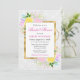 Pink, Yellow and Blue Flowers Gold Bridal Shower Invitation