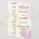 On the front of the program, you'll find the couples names, wedding date, city and state, and the ceremony order, all elegantly presented in a simple black block font. Meanwhile, the words "Welcome," "Ceremony," and "Wedding Party" are featured in a beautiful black modern script font, adding a touch of romance to the overall design.