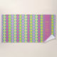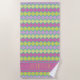 This cute and modern beach towel has a hot pink, pink, chartreuse yellow and aqua geometric pattern.