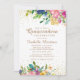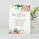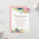 Elegant and colourful pink, blue, and yellow watercolor floral with gold glitter on a white Quinceañera party invitation. Contact us for help with customisation or to request matching products.