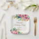 Elegant pink, yellow, and blue watercolor floral birthday party paper plates, personalised with your name and party date. Contact us for help with customisation or to request matching products.