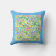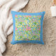 A very pretty Pillow or Cushion with a pattern of pink, yellow and blue primroses with a wide turqoise blue border, from a handpainted watercolour design by Judy Adamson.