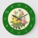 Pink Yellow Botanical Roses with Numbers Clock
