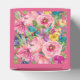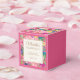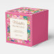 Cute and colourful pink, blue, and yellow watercolor floral 90th birthday party favour box personalised with the name of the guest of honour her age, and her party date. Contact the designer for help with customisation or to request matching or coordinating products.