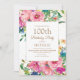 Pink Yellow Floral Gold Glitter 100th Birthday Invitation