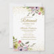Elegant and colourful pink and yellow watercolor floral with gold glitter on a white Retirement celebration party invitation. Contact us for help with customisation or to request matching products.