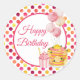 Pink Yellow Happy Birthday Polka Dot Classic Round Sticker