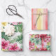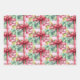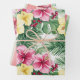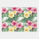 Pink Yellow Hibiscus Flowers Bows Stripes Birthday Wrapping Paper Sheet
