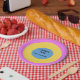 Pink Yellow Light Blue Vibrant Design Custom Text Paper Plate