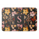 Stylish fall-coloured, orange, yellow, and pink watercolor flowers and leaves on black bath mat customised with your monogram/initial.