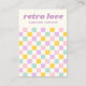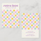 Earring jewellery display card featuring a light pink, yellow, purple and aqua blue chequerboard pattern and your company or design name in a retro style, purple font. All colours are customisable.