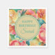 Pink Yellow Teal Watercolor Floral Happy Birthday Napkin