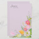 Pretty pink and yellow watercolor tulips/springtime floral and greenery on lavender stationery. Your name is in the top left corner, written in a gorgeous script font and a modern serif font. Contact us for help with customisation or matching products.