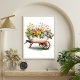 Pink Yellow White Garden Flowers in Wheel Barrel Poster