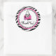 Pink Zebra Birthday Spa Diva Party Favour Classic Round Sticker