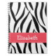 This cute and stylish custom zebra print and zebra skin spiral notebook cover with black and white stripes and a pink contrast stitched ribbon design can be personalised with your name. This spiral bound notebook can be used as a journal too, and it is equally great for home office supplies or back to school use. Design and artwork © Chrissy H. Studios, LLC. All Rights Reserved.