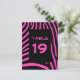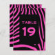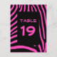 Zebra stripes pattern in black and bubblegum pink with room for a table number. You can customise and erase the word "Table" and centre the number.
