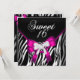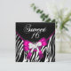Pink Zebra Sweet Sixteen 16 Birthday Black White Invitation