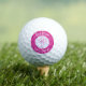 Personalised golf balls features a Christian cross made of bright pink zig-zags. Both fun and edgy. Sort of hard rock feminine. Shows on a white, fractal circle which is on a bright or hot pink circular background of squiggly squares. Customise by adding your name to the GOD BLESS for a special glove for yourself or a gift. Fun stocking stuffer.