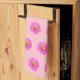 Seamless pattern of Zinnia flower printed on kitchen towel. Colours of the Zinnia flower are pink ray florets and yellow disc florets. Floral design kitchen towel for lovers of flowers or nature.