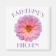 A close-up photograph of a single pink and purple zinnia flower and templates for first name and the word "kitchen" on white background.