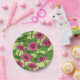 Pink Zinnias on light green Paper Plate