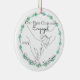 This line art displays the hands of a couple making a pinky promise surrounded by a simple red and green holly berry wreath with the caption, “Our First Christmas Engaged,” with personalisation for the names. The year 2024 appears on the left side of the ornament. The wreath is also on the back of the ornament, and there is a small text box for leaving a sweet note, the date the couple made it official, or perhaps words of encouragement to the new couple.
