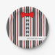 This fun design, is suitable for many occasions. For a casual event, these red, white and black stripes over a dark grey background have the right amount of pizzaz. Completing the look, there's a bright red bow tied five silver metallic buttons. The text area, at the bottom, can be personalised with a name, occasion or special event. You can also remove the text block.