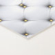 White pintucked leather with a metallic or pearlized sheen, dotted with gold beads. The back is done in a faux gold look.