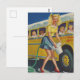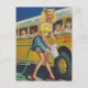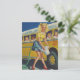 Pinup Retro Woman Washing a Yellow School Bus Postcard