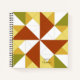 Square spiral notebook with traditional pinwheel quilt block on the cover and repeating pattern on the back makes a great gift for quilters and other creatives. Personalised with a name or other text and several choices of paper (graph paper, sketch etc). Designed in harvest colours of gold, green, rust red. See other patterns and styles on this item at Patchpourri on Zazzle.