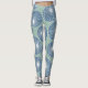 These leggings have a mid-century modern design of dusty blue circles with white starbursts inside on a field of seafoam green.