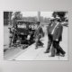 Old photo of man taking pictures of James R. Mann, Representative from Illinois with Senator Penrose. Antique camera and car, 1914.