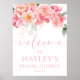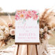 This bridal shower welcome sign features a blush pink peony spring floral design. The script heading is an image that cannot be edited. All of the other text is fully editable. For more advanced customisation of this design, simply select the "Customise It" button above.