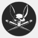 Rabbit skull and crossed carrots; dark and scary b/w ink drawing, on t-shirts, cards, gifts.