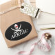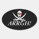 Fun Pirate sticker or label shows a skeleton pirate wearing a red eye patch, cross swords and the text "ARRGH!". Perfect for pirate parties,gift bags or invitation labels. IF YOU CHANGE THE STICKER SHAPE-ADJUST IMAGE AND TEXT TO FIT THE NEW SIZE- STAY Inside THE RED DOTTED LINES!