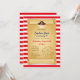 A fun Pirate Party Invitation in a red and white color scheme, featuring a treasure map and pirate illustration and a striped background. Perfect for little boys' and girls' birthday parties!