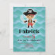 A cute boys pirate birthday invitation for a fun pirate party. Featuring a cute pirate with sword atop wavy blue water. With fun colourful customisable text, it's sure to put a smile on your pirate party goers faces. This pirate invite is suitable for boys birthdays: 1st 2nd 3rd 4th 5th 6th 7th 8th 9th 10th
