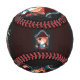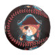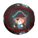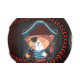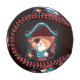 A cartoon pirate cat character on a baseball, showcasing its playful design.