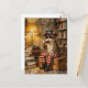 AI generated art of an adorable pirate cat enjoying some coffee sitting on an old wooden crate in a library