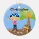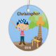 This Customisable Pirate Christmas Ornament can be personalised with your Child's Name and the year. It makes a great stocking stuffer or Christmas Gift. It features a cute little pirate, treasure chest and palm tree.